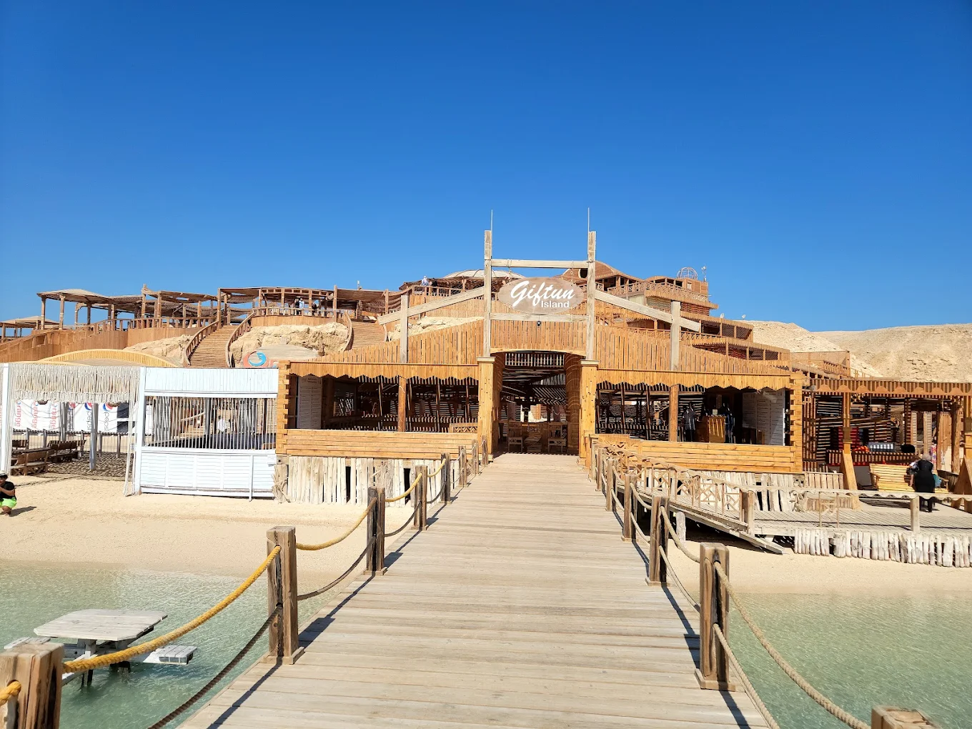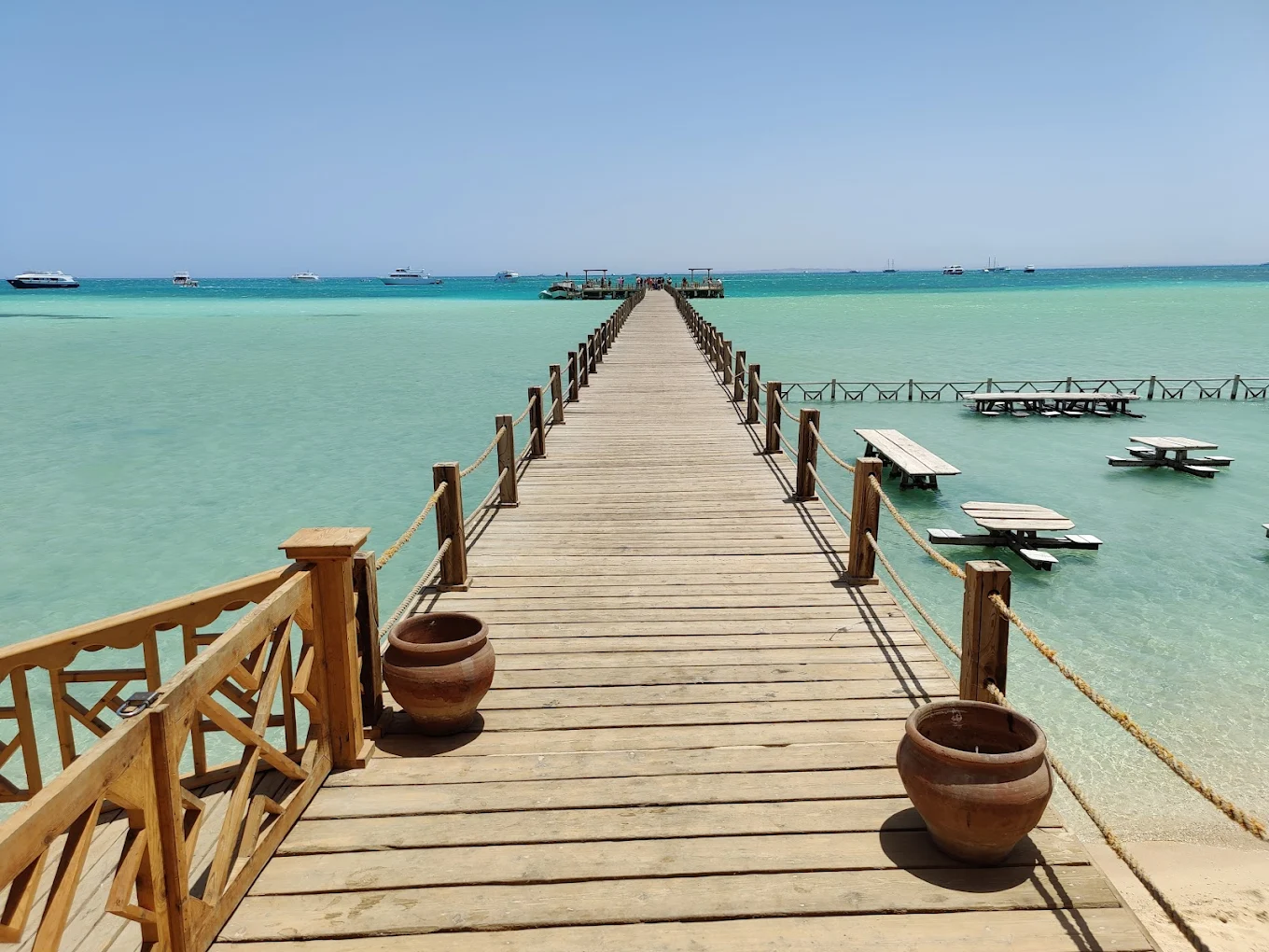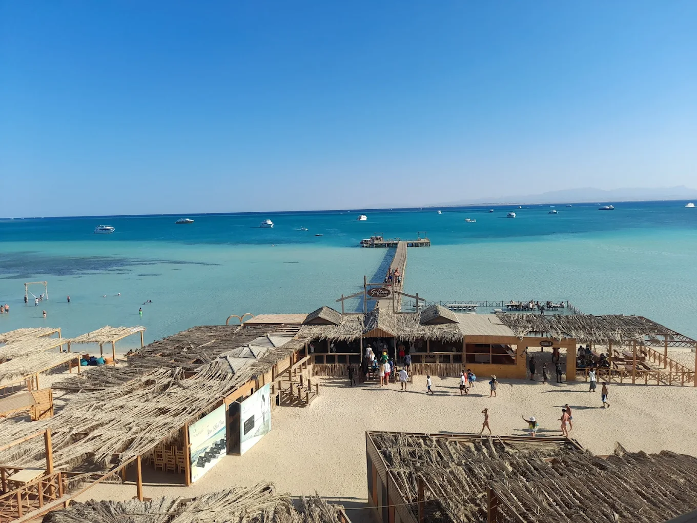Después de 45 minutos de navegación, disfrutará de una parada de 1 hora para hacer esnórquel y experimentar las aguas cristalinas del Mar Rojo. La visibilidad aquí puede alcanzar hasta 45 metros, y podrá ver peces payaso, mantarrayas, delfines y corales de diversos colores.